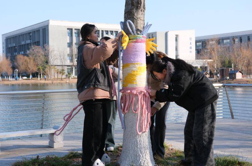 为大树披上兼具实用与创意的“冬装”。合肥职业技术学院供图